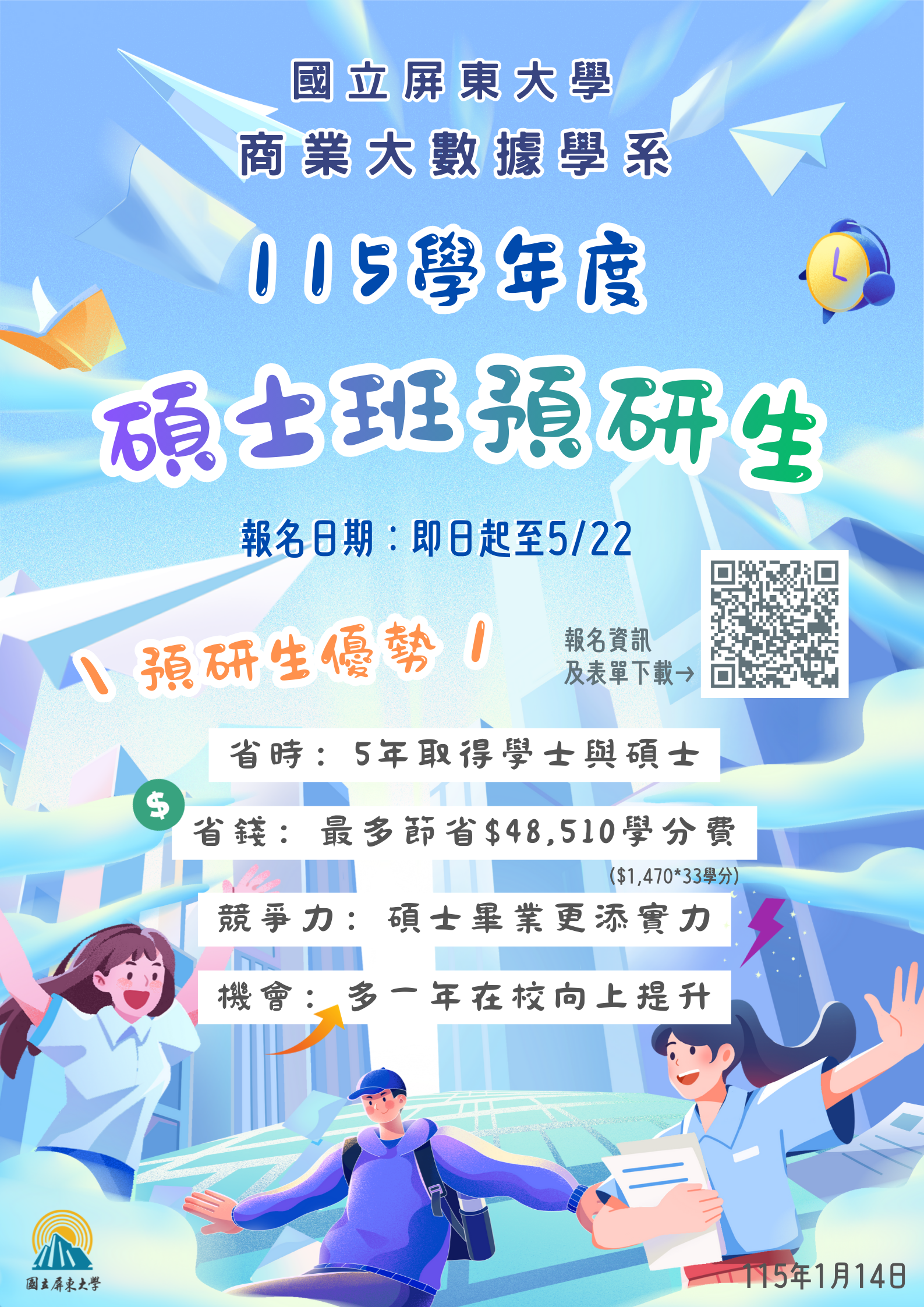 115學年度大學部學生預先修讀碩士學位課程(預研生)申請公告